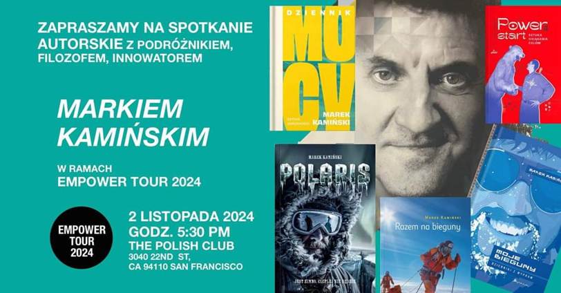 cup and napkin) to take home and wash. Saturday, November 2, 2024: 5:30 PM Meet the Author, Marek Kamiński FREE ADMISSION Polish food and beverages available for a donation